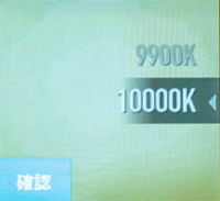 自動・晴天・曇り・白熱灯・蛍光灯、もしくは2000K~10000Kの間で1000K単位で設定可能です。