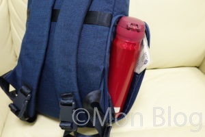 ここは他とは独立した収納エリアになっており、ペットボトルや水筒(600mlの大きめの水筒も可)が入るのですが、なんと内側が撥水加工になっているので濡れたまま入れることができます!
