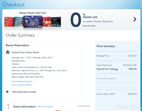 今回はその続きで、パークチケットやダイニング・プランの有無などオプションの追加から予約完了まで解説したいと思います。